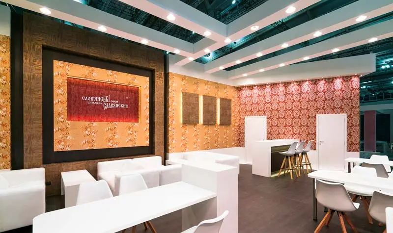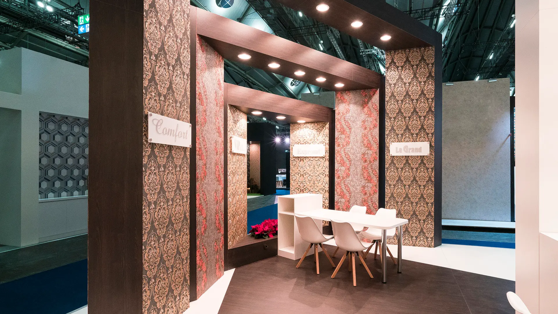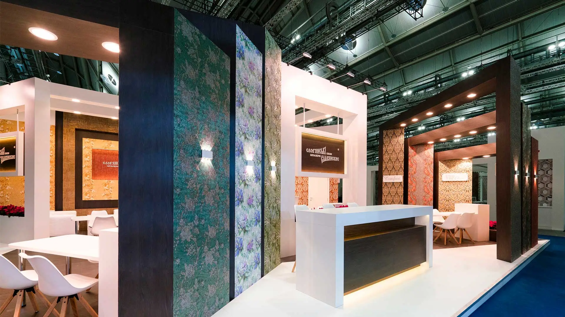 Der Messestand „Spatial Illusion“ für SLOVYANSKY WALLPAPER auf der Heimtextil 2020 in Frankfurt (130 m²) setzt neue Maßstäbe im Ausstellungskonzept. Durch asymmetrisch angeordnete Bögen, die im Raum verschoben sind, entsteht eine faszinierende räumliche Illusion: Aus einem Blickwinkel wirken die Bögen flach, aus einem anderen entfaltet sich eine dreidimensionale Struktur. Dieses innovative Design schafft nicht nur visuelle Spannung, sondern zieht die Besucher in seinen Bann.